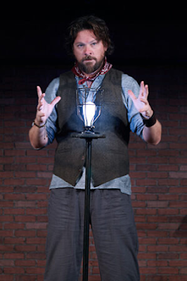 Baird enters a pretty bare theatre space (Marty Burnett, with props by Phillip Korth) fittingly, not far from the ocean. He takes off his hat, sets down his suitcase and begins his narrative.